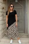 Kadın Kısa Kollu Bisiklet Yaka Leopar Detaylı Midi üst Viskon Alt Süprem Elbise