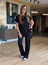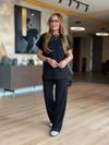 Kadın Kısa Kollu Bisiklet Yaka Viskon Iki Iplik Bluz Ve Pantolon Ikili Takım