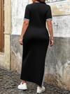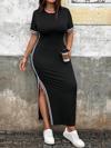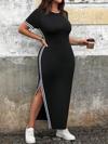 Kadın Kısa Kollu Bisiklet Yaka Yandan şerit Ve Yırtmaçlı Viskon Iki Iplik Elbise