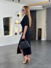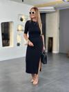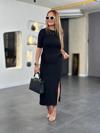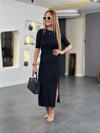Kadın Kısa Kollu Bisiklet Yaka Yandan Yırtmaçlı Viskon Iki Iplik Elbise