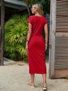 Kadın Kısa Kollu Bisiklet Yaka Yandan Yırtmaçlı Viskon Midi Elbise
