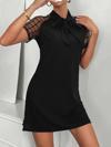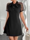 Kadın Kısa Kollu Boyundan Bağlamalı Omuzlarda Tül Detaylı Janjan Krep Elbise