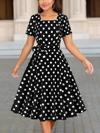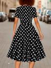 Kadın Kısa Kollu Geometrik Yaka Puantiyeli Kiloş Midi Süprem Elbise