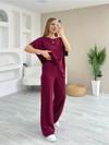 Arona MDB Kadın Kısa Kollu Kayık Yakalı Dikiş Izi Detaylı Viskon Iki Iplik Bluz Ve Pantolon Ikili Takım