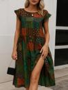 Kadın Kısa Kollu Kolları Fırfırlı Bisiklet Yakalı Kare Desenli Elbise