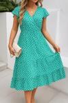 Kadın Kısa Kollu Kruvaze Yaka Beli Lastikli çiçek Desenli Elbise
