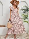 Kadın Kısa Kollu Kruvaze Yaka Beli Lastikli çiçek Desenli Elbise