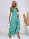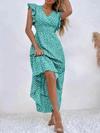 Kadın Kısa Kollu Kruvaze Yaka Beli Lastikli çiçek Desenli Elbise