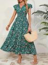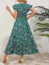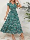 Kadın Kısa Kollu Kruvaze Yaka Beli Lastikli çiçek Desenli Elbise