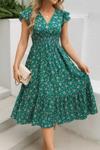 Kadın Kısa Kollu Kruvaze Yaka Beli Lastikli çiçek Desenli Elbise