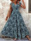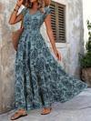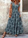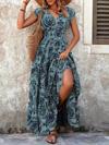 Kadın Kısa Kollu Kruvaze Yaka Beli Lastikli Süprem Maksi Boy Elbise