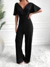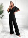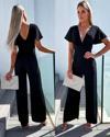 Kadın Kısa Kollu Kruvaze Yaka Sırt Dekolteli Pegasus Kumaş Tulum