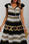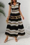 Kadın Kısa Kollu Kruvaze Yakalı Beli Lastikli Desenli Maksi Boy örme Krep Elbise
