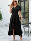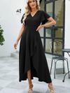 Arona MDB Kadın Kısa Kollu Kruvaze Yakalı önden Volanlı çapraz Kesim Detaylı Maksi Boy Ithal Krep Elbise