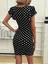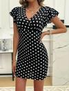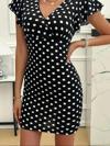 Kadın Kısa Kollu Kruvaze Yakalı örme Puantiyeli Krep Elbise