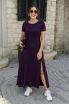 MDB Kadın Kısa Kollu Sırt Dekolteli Yırtmaç Detaylı Viskon Elbise