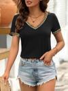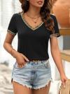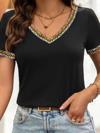 Kadın Kısa Kollu V şerit Etnik Desen Yakalı Viskon Bluz