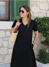 Kadın Kısa Kollu V Yaka Cepli Viskon Elbise