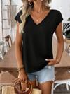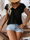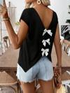 Kadın Kısa Kollu V Yakalı Arkadan Kurdele Detaylı Viskon Bluz