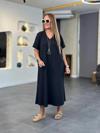 Kadın Kısa Kollu V Yakalı Cep Detaylı Uzun Viskon Iki Iplik Elbise