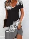 Kadın Kısa Kollu V Yakalı çiçek Baskılı Süprem Elbise