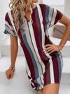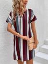 Kadın Kısa Kollu V Yakalı çizgi Baskılı Süprem Elbise