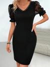 Kadın Kısa Kollu V Yakalı Dantel Detaylı Kısa Ithal Krep Elbise