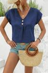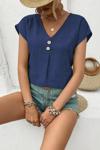 Arona MDB Kadın Kısa Kollu V Yakalı Düğmeli Keten Bluz