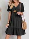 Kadın Kısa Kollu V Yakalı Fırfırlı Bürümcük Elbise