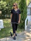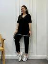 Kadın Kısa Kollu V Yakalı Iki Iplik Bluz Ve Pantolon Ikili Takım