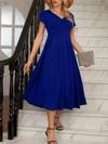 Ersefa Moda Stil Relaxed Kruvaze Mini Boy Kuşaklı A-Kesim Astarlı Piliseli Örme Kısa Şık Abiye Elbise