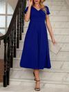 Ersefa Moda Stil Regular Kruvaze Mini Boy Düz Dokuma Elbise