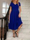 Ersefa Moda Stil Regular V Yaka Midi Boy Fırfırlı Astarlı Şifon Dokuma Elbise