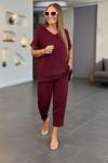 Kadın Kısa Kollu V Yakalı Pul Payetli Viskon Iki Iplik Bluz Ve Pantolon Ikili Takım