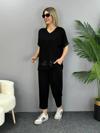 Kadın Kısa Kollu V Yakalı Pul Payetli Viskon Iki Iplik Bluz Ve Pantolon Ikili Takım