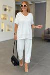 MDB Kadın Kısa Kollu V Yakalı Pul Payetli Viskon Iki Iplik Bluz Ve Pantolon Ikili Takım