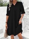 Kadın Kısa Kollu V Yakalı Salaş Janjan Krep Elbise
