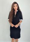 Kadın Kısa Kollu Yakadan Fermuarlı Cepli Yandan Yırtmaçlı Viskon Elbise