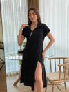Kadın Kısa Kollu Yakadan Ve Etekten Fermuarlı Midi Viskon Iki Iplik Elbise