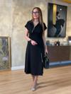 Kadın Kısa Kollu Yakadan Ve Etekten Fermuarlı Midi Viskon Iki Iplik Elbise