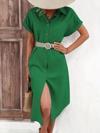 Kadın Kısa Kollu Yakalı Düğme Detay Midi Dokuma Elbise