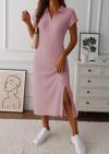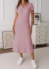 Kadın Kısa Kollu Yakalı Yandan Yırtmaçlı Kalın Fitilli Kaşkorse Elbise