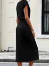 Kadın Kısa Kollu Yakası Açık Belden Kuşaklı Yandan Yırtmaçlı Midi Viskon Elbise