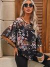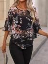 Kadın Kısa Kollu Yuvarlak Yaka çiçek Baskılı Asimetrik Kesim şifon Bluz