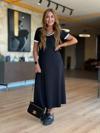 Kadın Kısa Kollu Yuvarlak Yaka Yandan Yırtmaçlı Midi Viskon Elbise