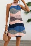 Kadın Kolsuz Boyundan Askılı Desenli Midi Süprem Elbise