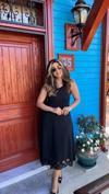 Kadın Kolsuz Etek Ucu Lazer Kesim çiçek Desenli Midi Boy Janjan Krep Elbise