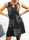 Kadın Kolsuz Halka Detay Mektup Desenli Mikro Elbise