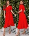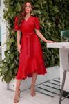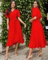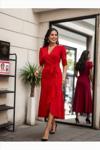Kadın Kruvaze Yaka Midi Boy Kuşaklı Krep Elbise 120 Cm
