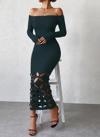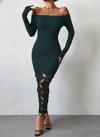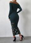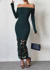 Kadın Madonna Yaka Uzun Kollu Lazer çiçek Kesim Detaylı Uzun Ithal Krep Elbise